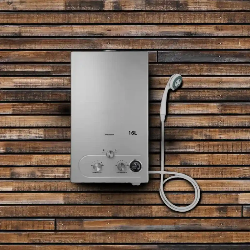 Ge din utedusch en förstklassig uppgradering med denna genomströmningsvärmare för gasol. Med en kapacitet på upp till 18 liter varmt vatten i minuten kan du njuta av en skön dusch – oavsett om det är i sommarstugan, på campingsemestern eller hemma i trädgården.